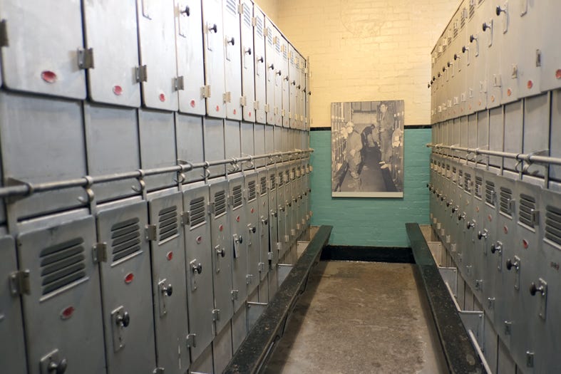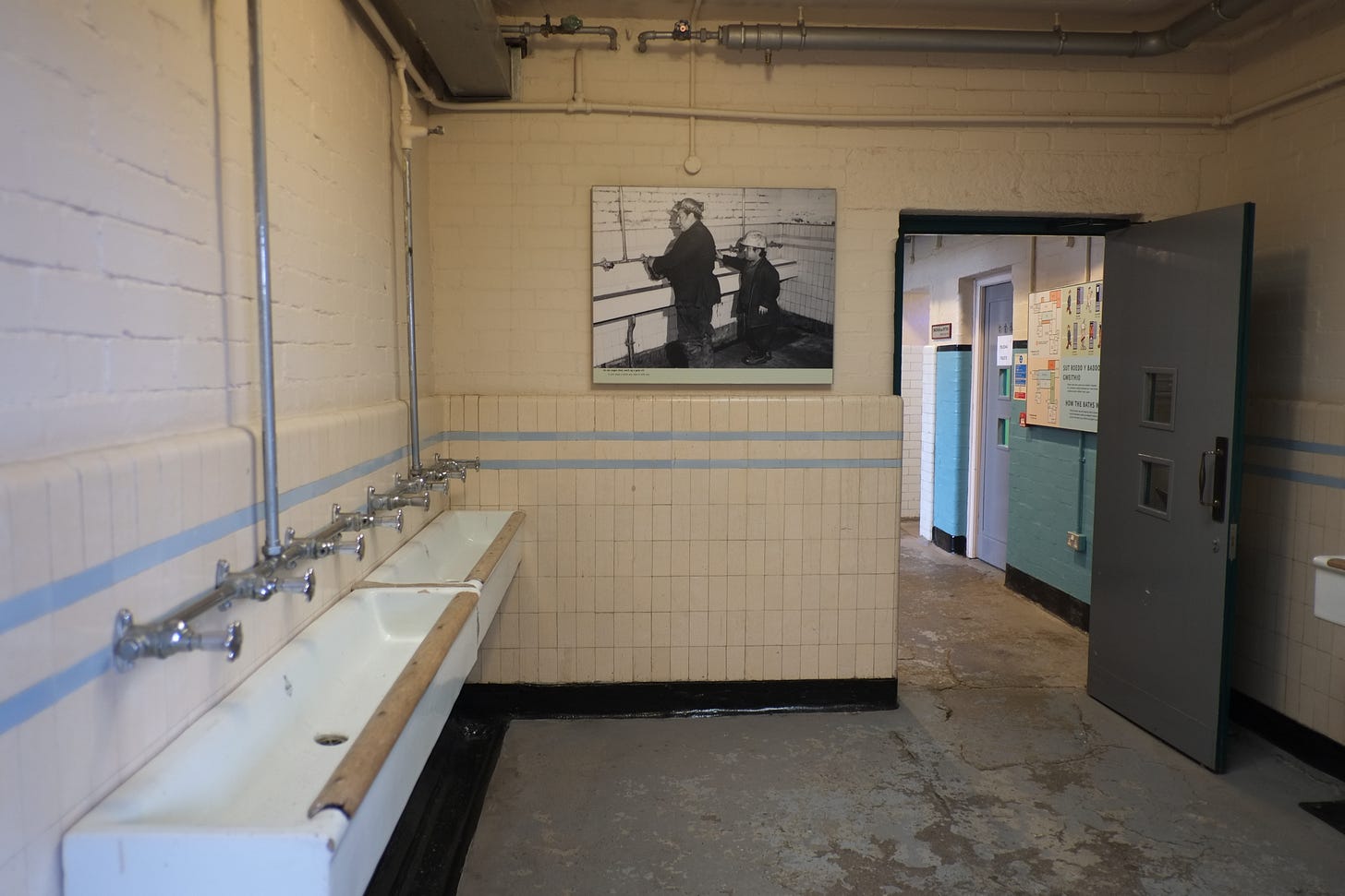 The showers, especially on Fridays, were also a site of noise: jokes, horseplay, and, yes, song echoing from the tiles. Once washed, men returned to the ‘clean side,’ storing towel and flannel, dressing, and combing their hair before making for the canteen and a cup of tea.